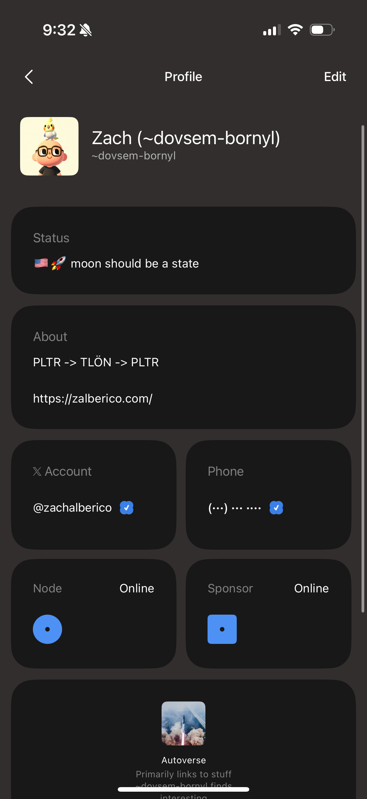 The app is great and has what you’d expect - notifications! fast performance! It also has built in contacts that make it easy to keep track of other users you know on the network via their Urbit ID (and you can set a custom name for them). When accessed on a desktop, the UI served now closely resembles the app too (rendered for desktop) so it’s a similar experience across all devices. The app supports connecting to an Urbit planet you host yourself (I access mine that I host on my Native Planet) or to an ID hosted by Tlon. There’s currently a waitlist if you want to use Tlon Hosting and don’t already have an account, but if you’d like to skip it dm me on X and I can get you in.