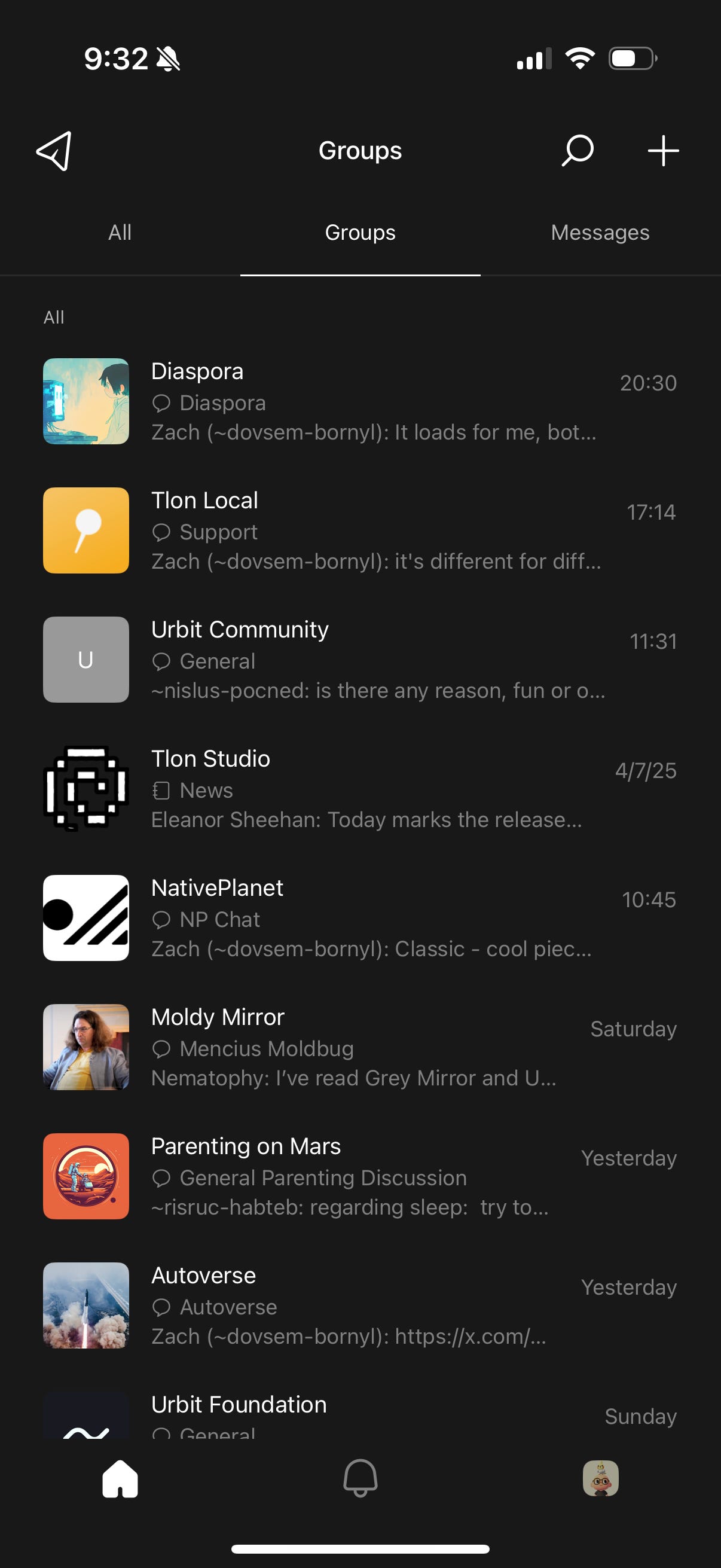 The other big changes since my last update: the separate %talk app is dead (a separate app for dms never made much sense anyway) and while %landscape and a handful of other Urbit apps still exist, they’re largely irrelevant these days. That may change in the future, but as I see it Tlon is focused on delivering a really good user experience for this core use case - freeing chat from centralized servers and middle men outside of your control. I’d recommend most users don’t install any other apps and just use Tlon Messenger.